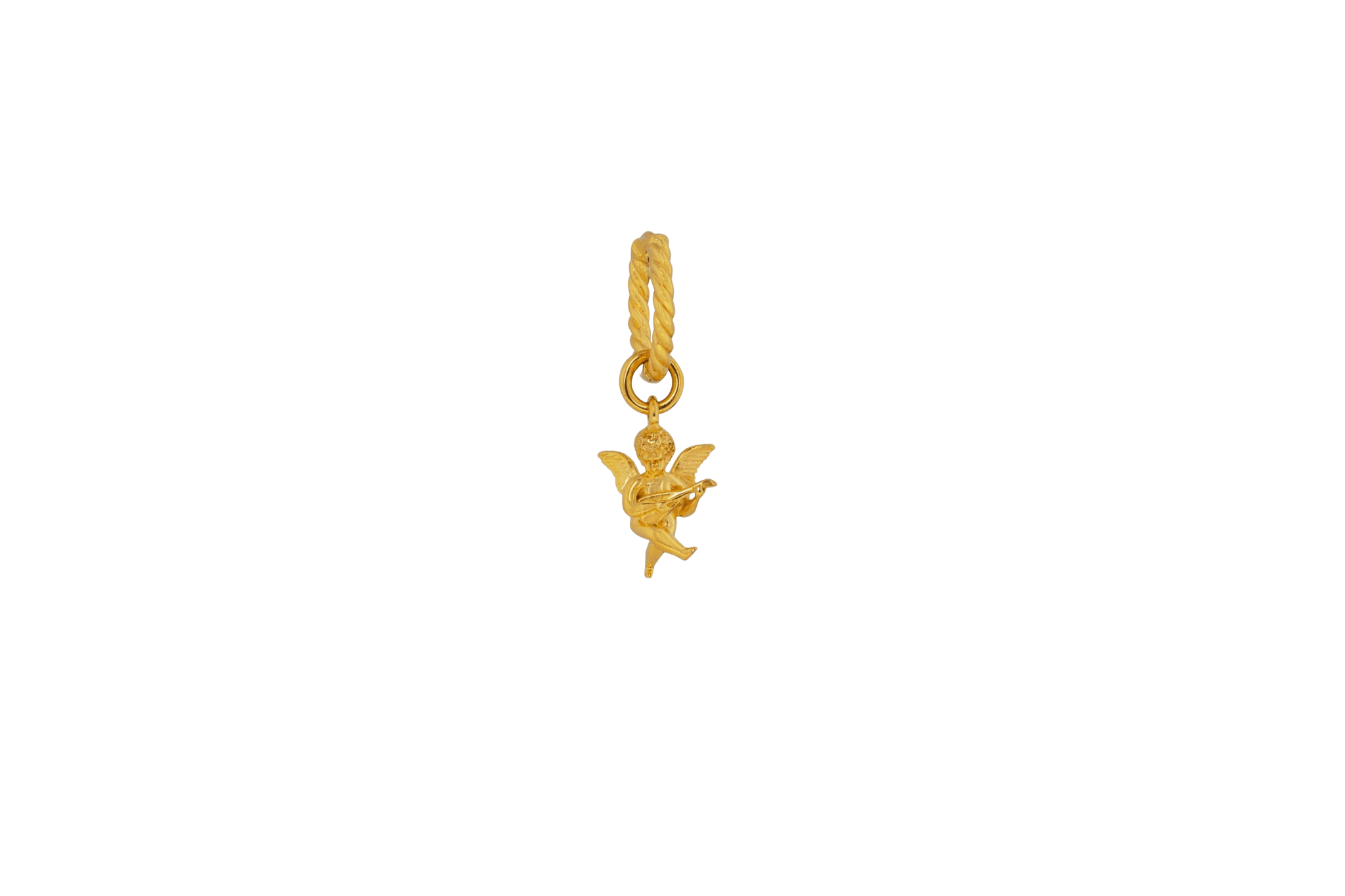 En rå och klassisk hoops-örhänge med en detaljerad unisexcharm som föreställer en ängel.• Hoops-örhänget har en diameter på 13 mm.• IX Angel Charm är 12 mm x 10 mm.• Smycket är tillverkat av 100% återvunnet 22 karats guldpläterat 925 sterling silver.• Alla våra smycken är stämplade med 925 IX inuti, vilket är vår egen varumärkesstämpel, registrerad hos danska ädelmetallkontrollen.