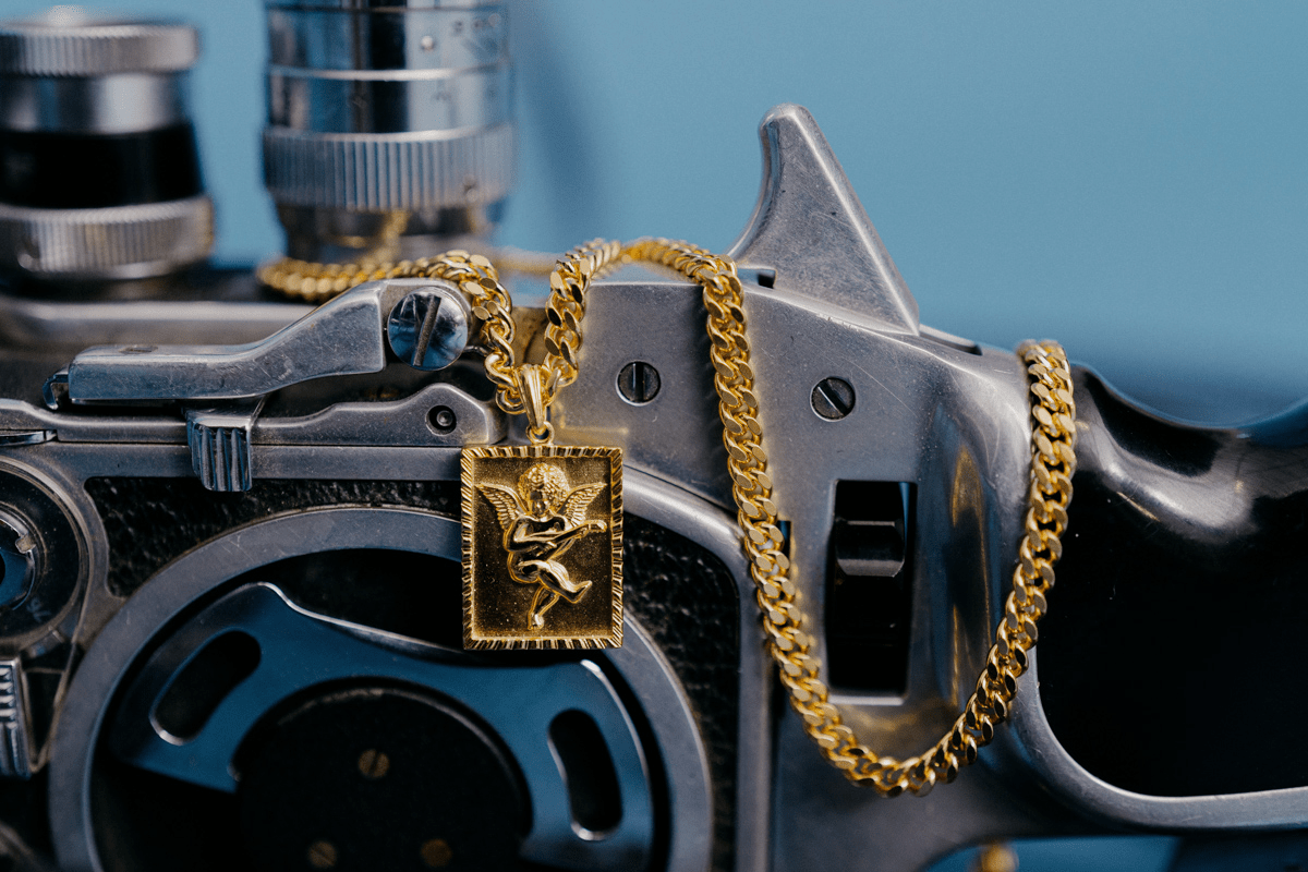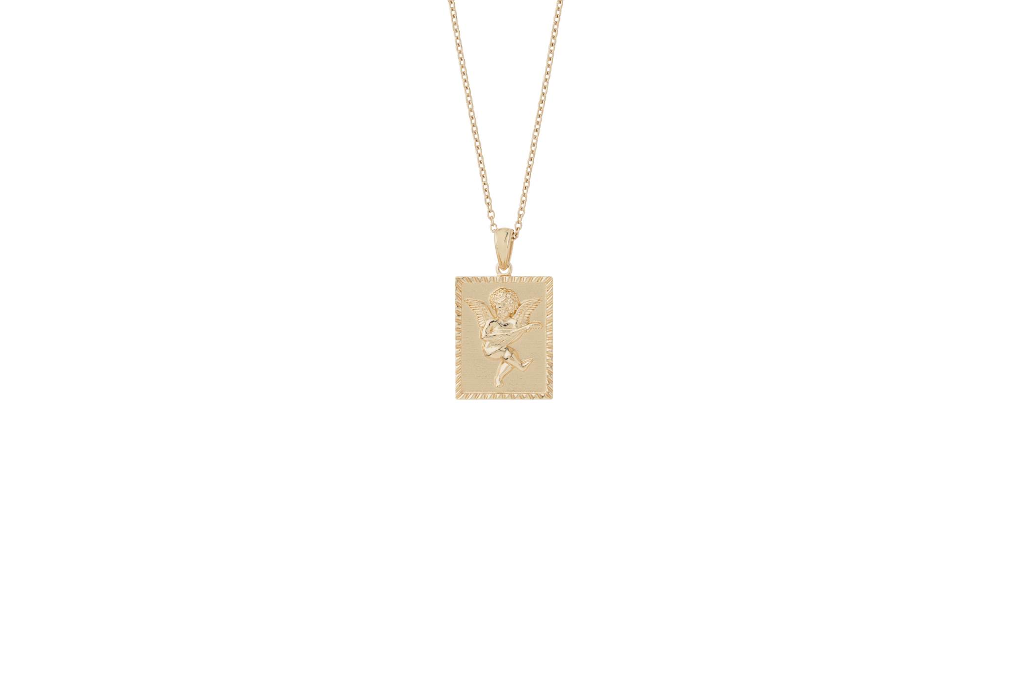 Detaljerat unisex hängsmycke med ängel. • Smycket är tillverkat av 100% återvunnet 22 karats guldpläterat 925 sterlingsilver. • Hängsmycket mäter 15 x 19 mm• Alla våra smycken är stämplade med 925 IX inuti – vår professionella namnstämpel, registrerad av den danska ädelmetallkontrollen.