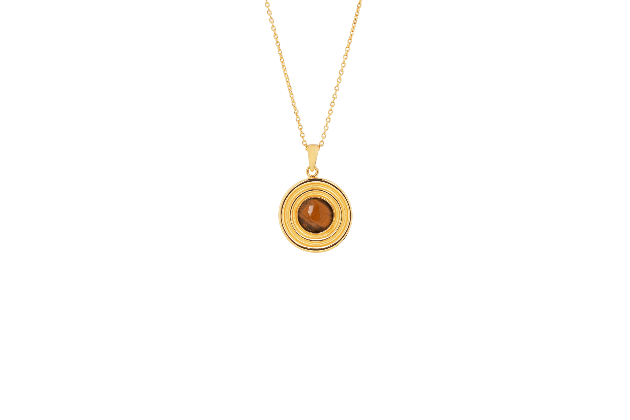 Unikt unisex halsband med Tiger Eye hänge. • Hängsmycket mäter 18 mm i diameter.