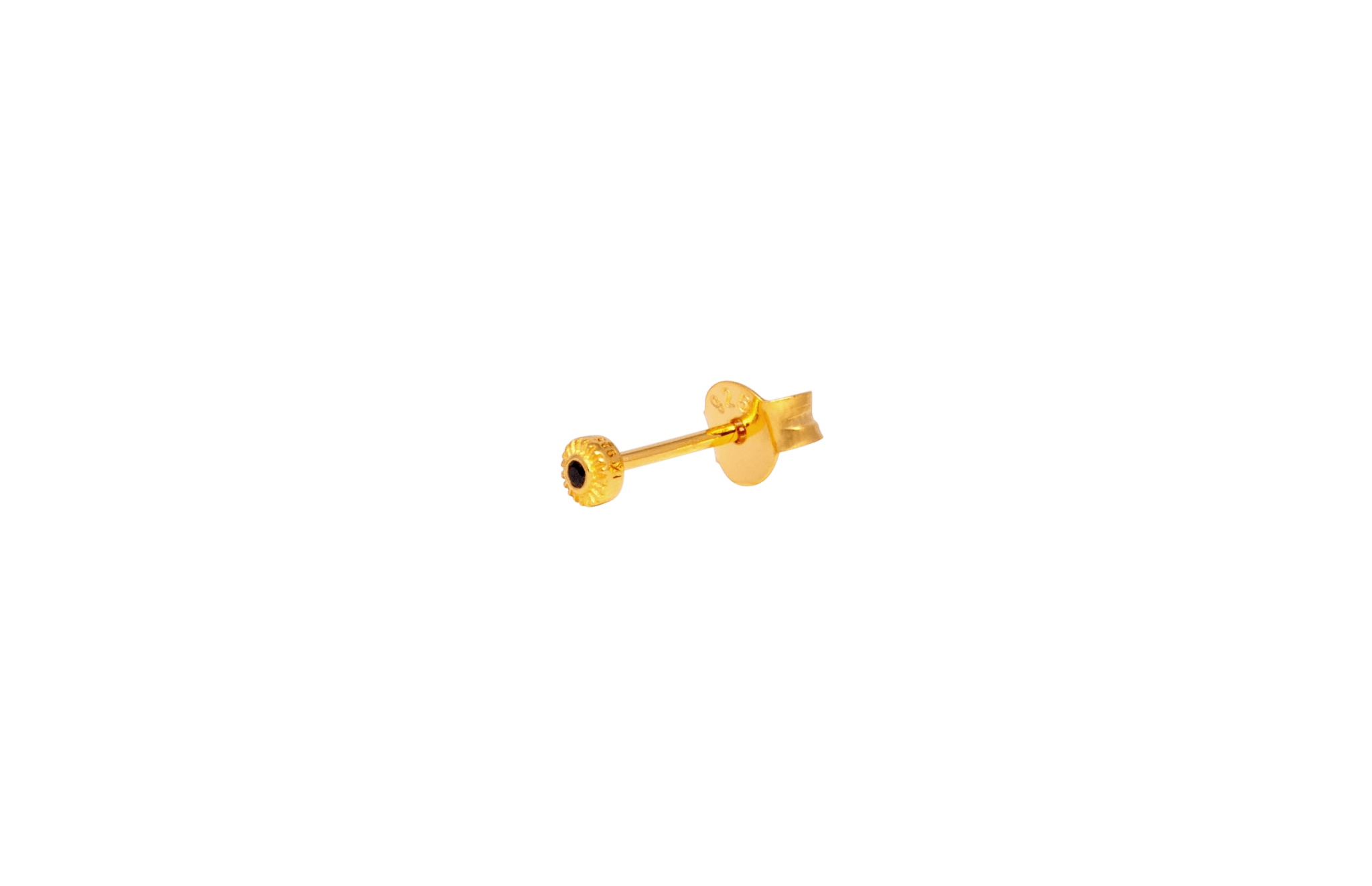 Det här lilla örhänget väcker uppmärksamhet men är samtidigt tillräckligt enkelt för att kunna kombineras med andra IX-örhängen. Den lilla svarta stenen i mitten föreställer universuml och strålarna runt omkring den utgör örhängets form.