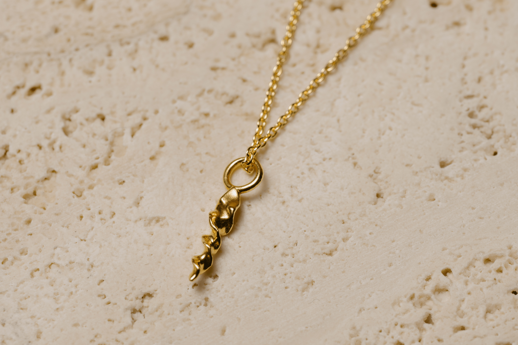En spegling av materialen samt det opolerade i naturen.• Smycket är tillverkat av 100% återvunnet 22 karats guldpläterat 925 sterlingsilver. • IX Conch-hänget mäter 18 mm på höjden. • Alla våra smycken är stämplade med 925 IX inuti – vår professionella namnstämpel, registrerad av den danska ädelmetallkontrollen.