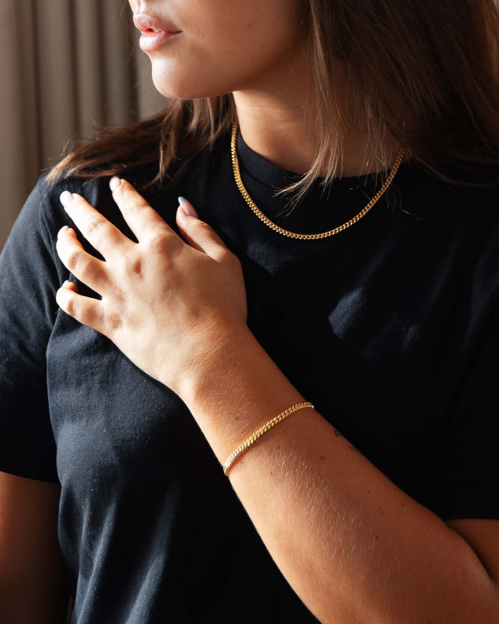 Presentset bestående av IX Curb Chain och IX Curb Bracelet.Vid köp av setet sparar du 15% på halsbandet och armbandet. Small: IX Curb Chain (40-45 cm) och IX Curb Bracelet (17 cm). Medium: IX Curb Chain (55-60 cm) och IX Curb Bracelet (19 cm).