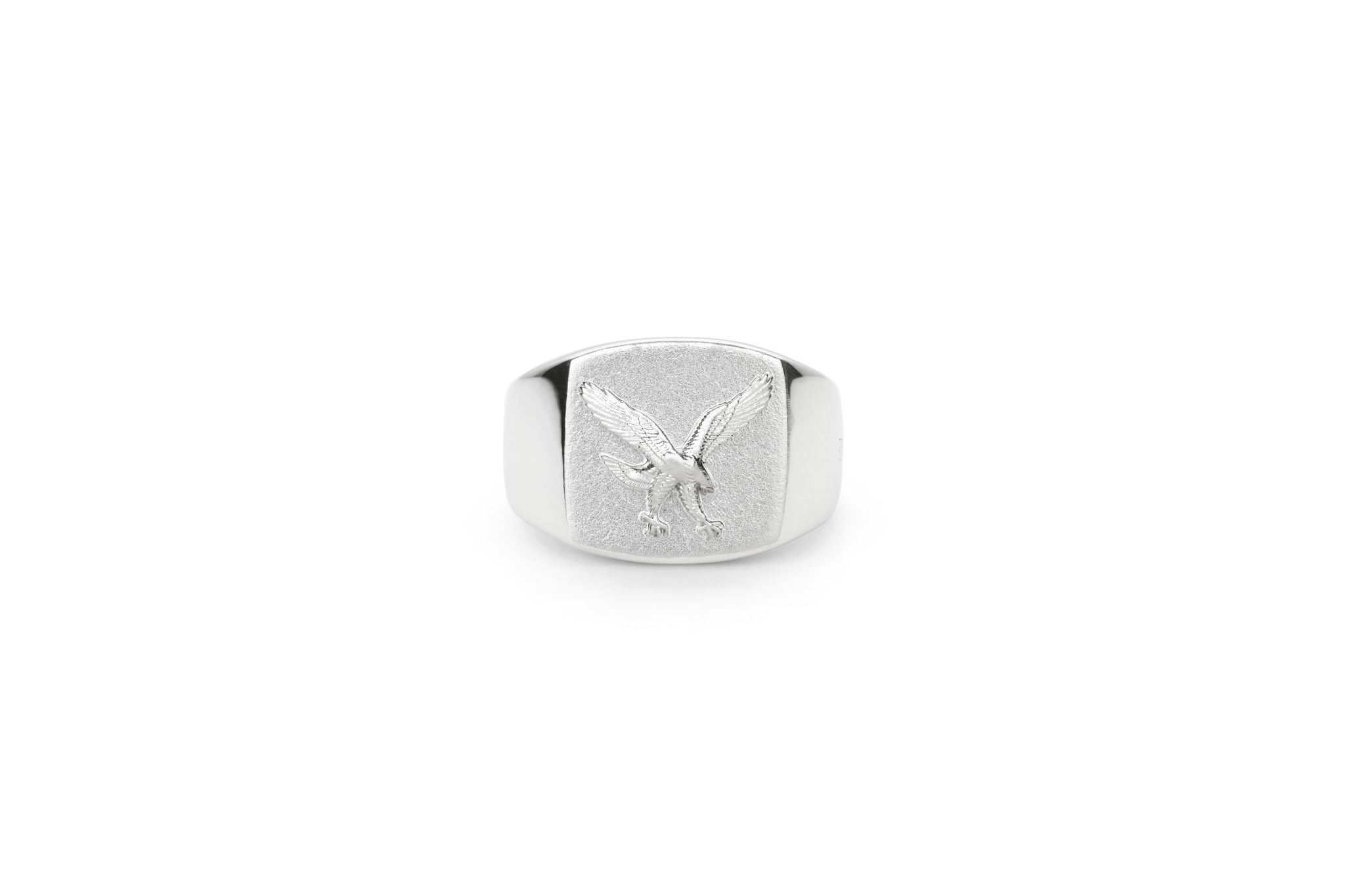 Unisex signetring med en majestätisk örn.• Stilens topplatta mäter 14 x 14 mm.• Smycket är tillverkat av 100% återvunnet 925 sterlingsilver.• Alla våra smycken är stämplade med 925 IX inuti, vår professionella namnstämpel, registrerad av den danska ädelmetallkontrollen.