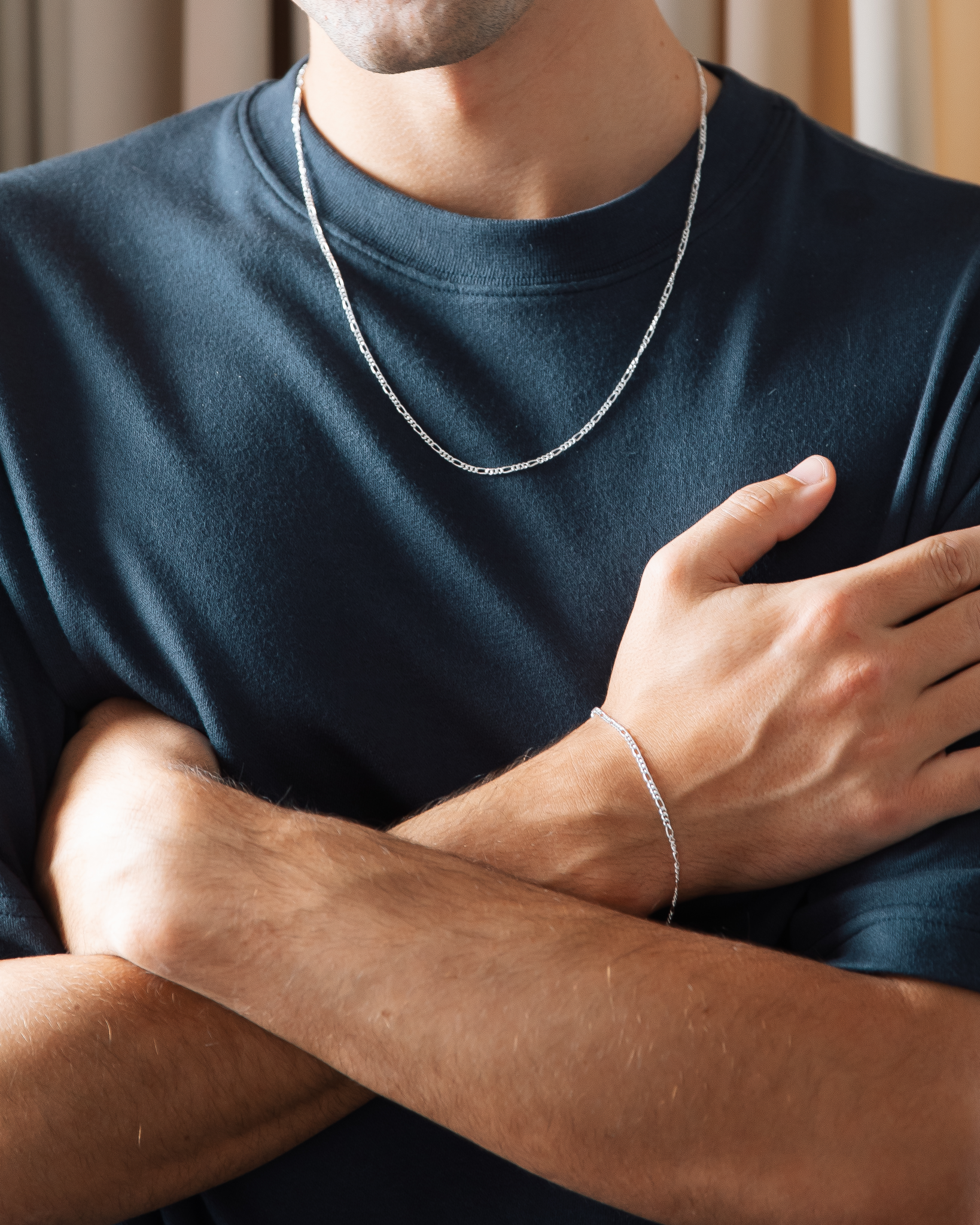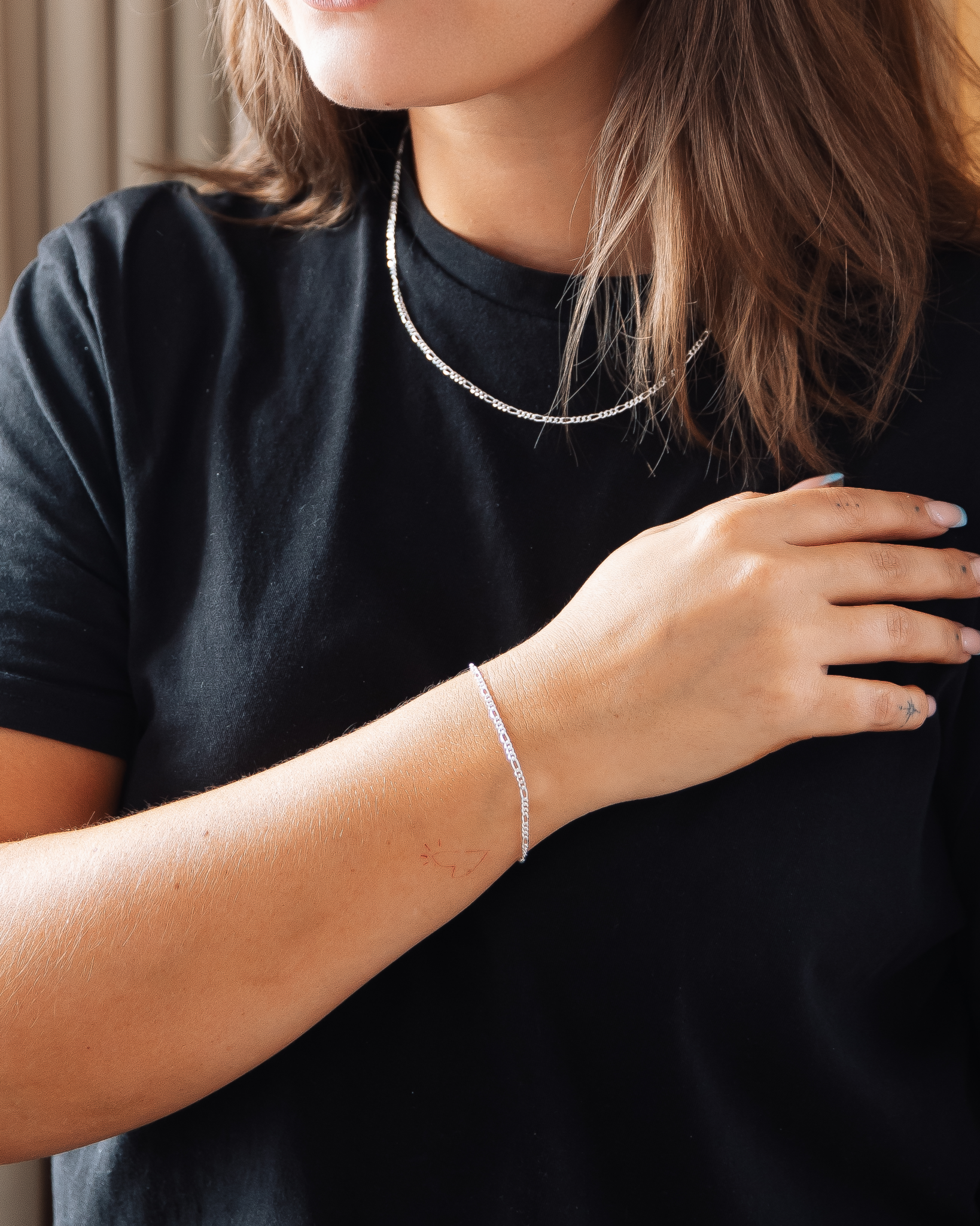 Presentset bestående av IX Figaro Chain Silver och IX Figaro Bracelet Silver.Vid köp av setet sparar du 15% på halsbandet och armbandet. Small: IX Figaro Chain Silver (45-50 cm) och IX Figaro Bracelet Silver (16,5-18 cm). Medium: IX Figaro Chain Silver (55-60 cm) och IX Figaro Bracelet Silver (18,5-20 cm).