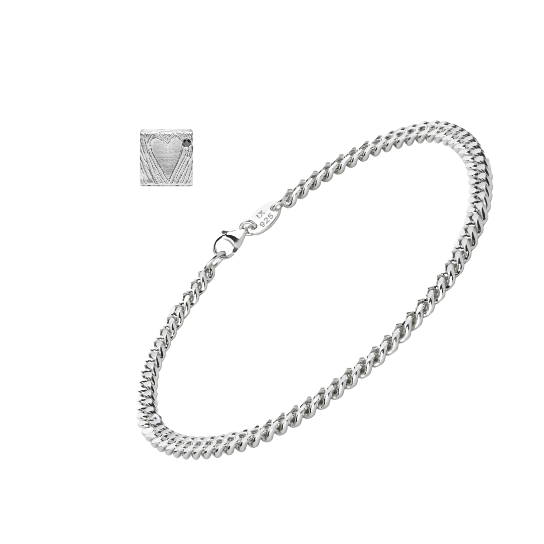 Jewellery set consisting of IX Curb Bracelet silver and IX Heart in a Box Charm silver.When purchasing the set, you save 20% on the Bracelet and charm.
