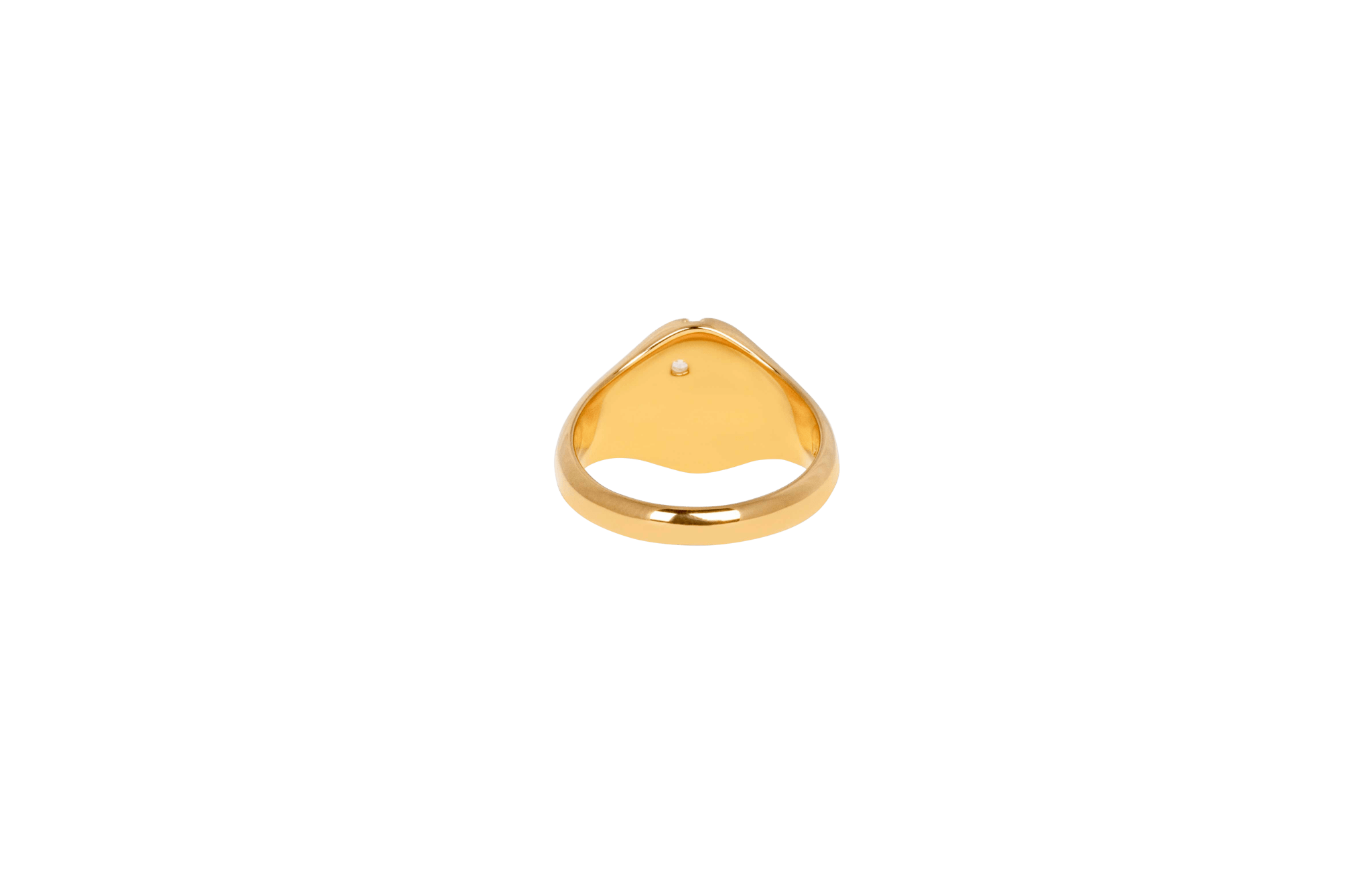 Klassisk minisignetring med rustik yta inspirerad av den råa naturen och prydd med en zirkonia sten.• Ringens toppplatta mäter 11 x 8 mm.• Smycket är tillverkat av 100% återvunnet 22 karats guldpläterat 925-sterlingsilver. • Alla våra smycken är stämplade med 925 IX på insidan, det är vår professionella namnstämpel, registrerad av den danska ädelmetallkontrollen.