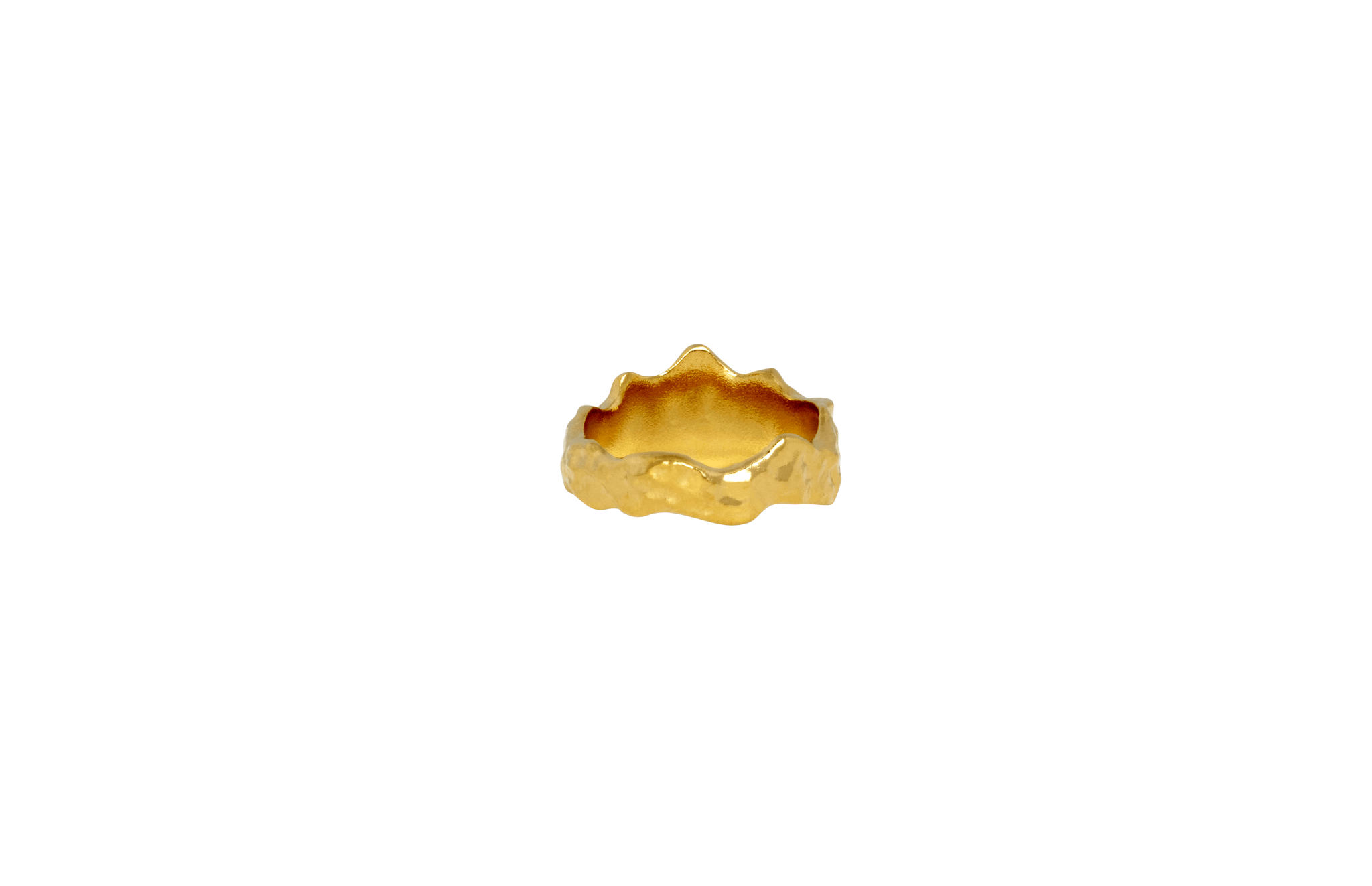Unik och delikat ring med en hammrad textur.• Detta smycke är tillverkat av 100% återvunnet, 22 karat guldpläterat 925 sterlingsilver.• Alla våra smycken är stämplade med 925 IX på insidan, vilket är vårt professionella varumärkesstämpel registrerat hos den danska ädelmetallkontrollen.