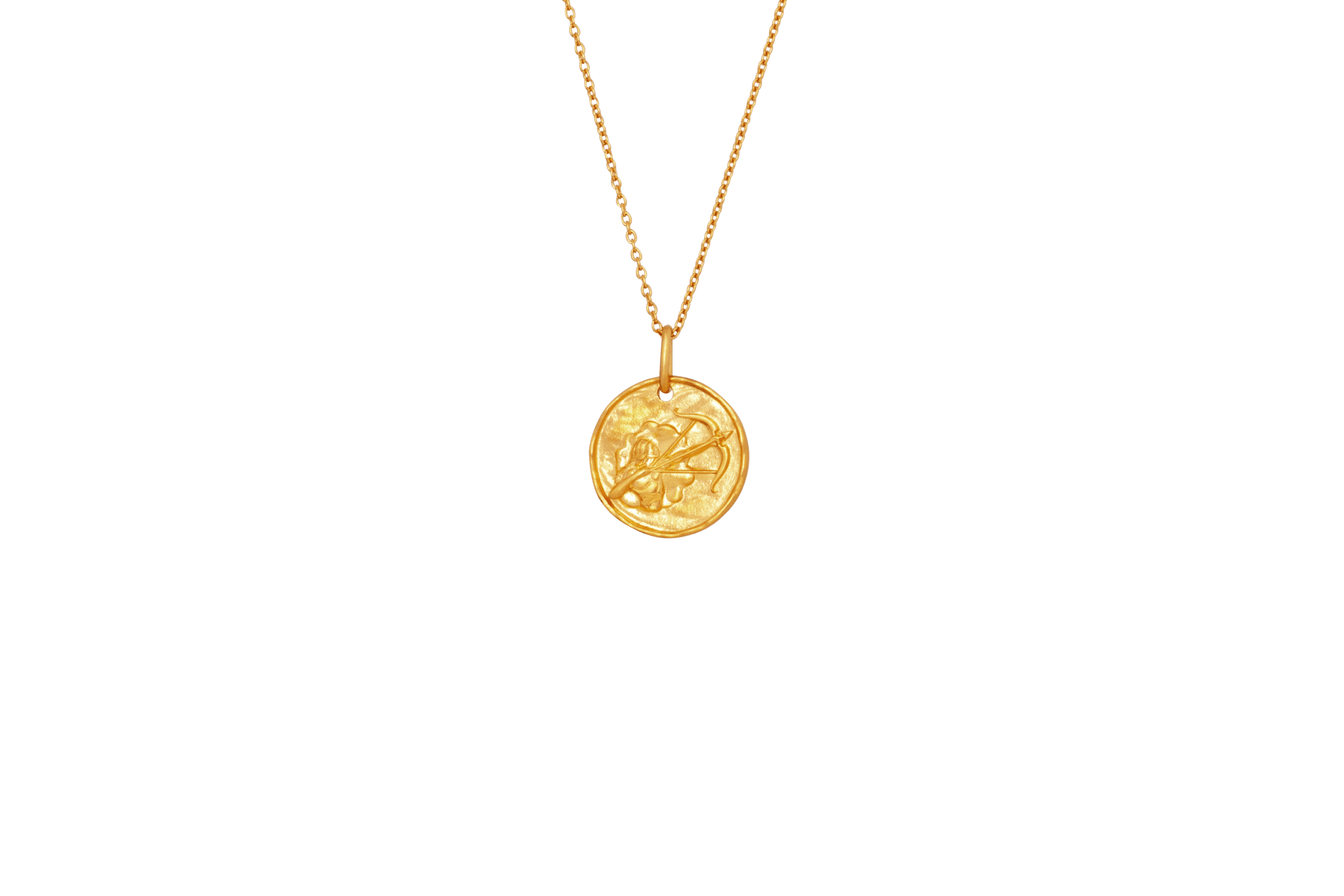 Skytten är lekfull och vågar kasta sig ut på djupt vatten. Skytten är intellektuell och optimistisk i sitt möte med världen.• Smycket är 1,7 cm i diameter.• Smycket är tillverkat av 100% återvunnet 22 karats guldpläterat 925 sterlingsilver. • Alla våra smycken är stämplade med 925 IX inuti, vår professionella namnstämpel, registrerad av den danska ädelmetallkontrollen.