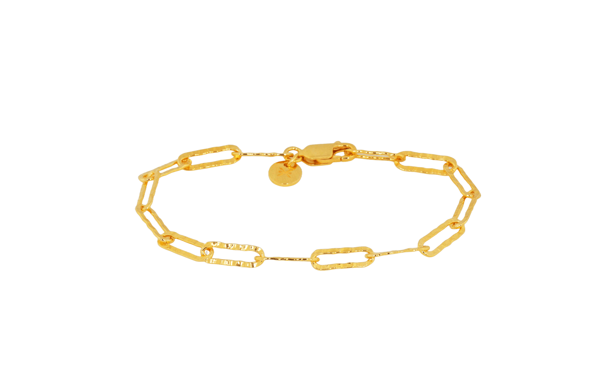 A bracelet crafted in high quality featuring continuous oval links. Finished with a lobster-clasp closure engraved with IX STUDIOS.• The style measures 4 mm in the width. • This bracelet is made from 100% recycled 22 karat gold-plated 925 sterling silver• All our jewellery is stamped with 925 IX inside, which is our own hallmark registered with the Danish Assay Office.