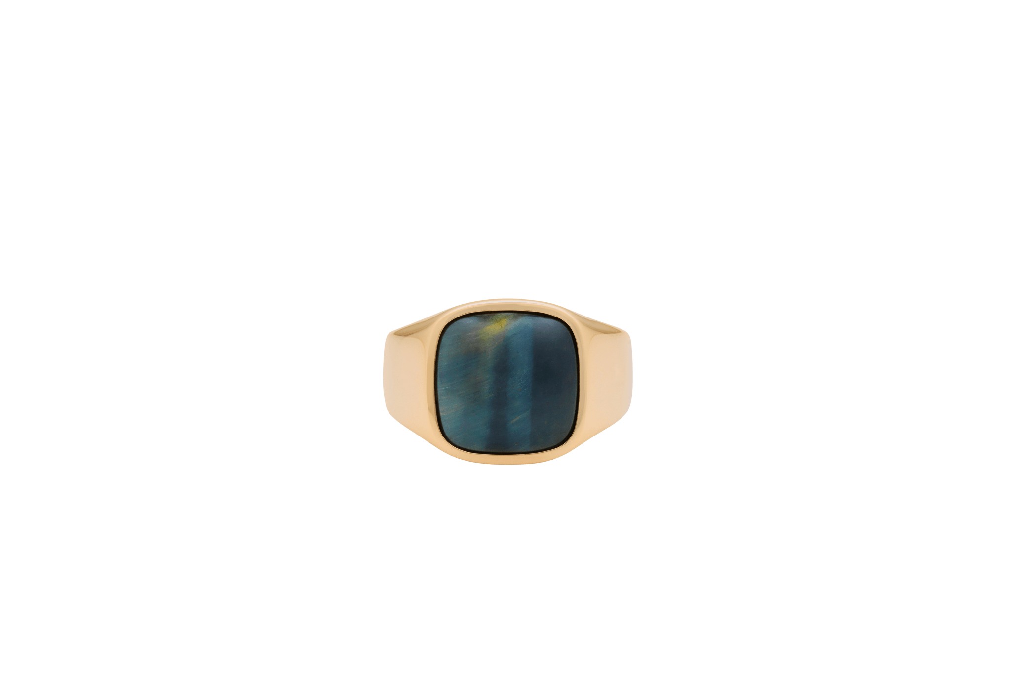 Unisex signet ring med mjuka kanter och Hawks Eye naturstone.• Stilens topplatta mäter 14 x 14 mm.• Smycket är tillverkat av 100% återvunnet 22 karats guldpläterat 925-sterlingsilver. • Alla våra smycken är stämplade med 925 IX på insidan, det är vår professionella namnstämpel, registrerad av den danska ädelmetallkontrollen.