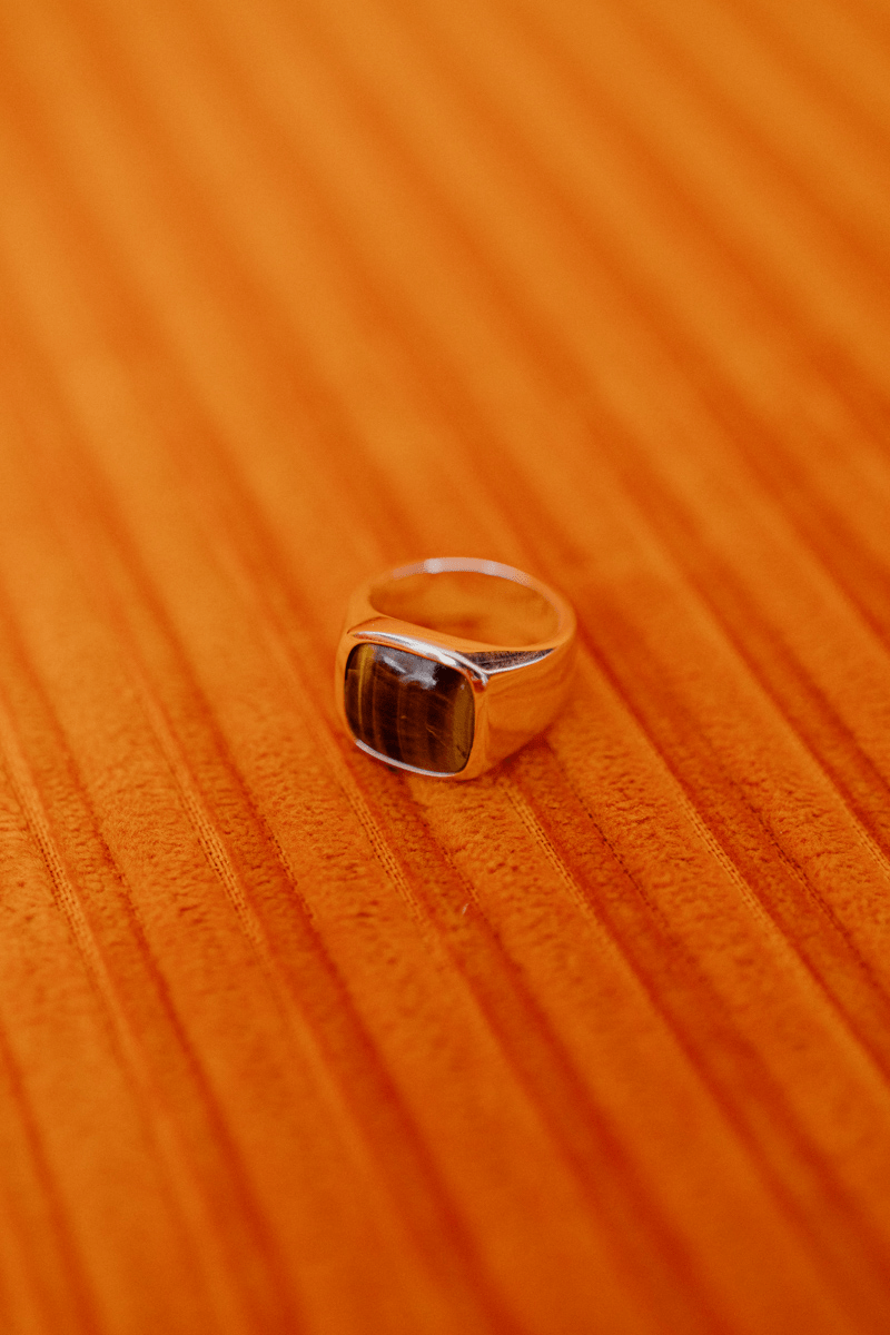 Unisex signetring med mjuka kanter och en Tiger Eye natursten. • Stilens topplatta mäter 14 x 14 mm.• Smycket är tillverkat av 100% återvunnet 925 sterlingsilver. • Alla våra smycken är stämplade med 925 IX inuti – vår professionella namnstämpel, registrerad av den danska ädelmetallkontrollen.