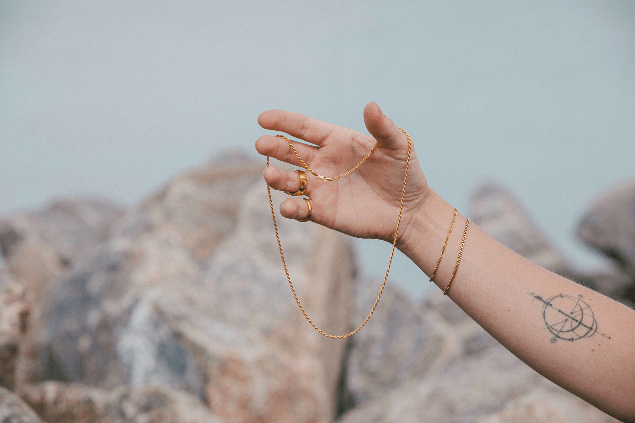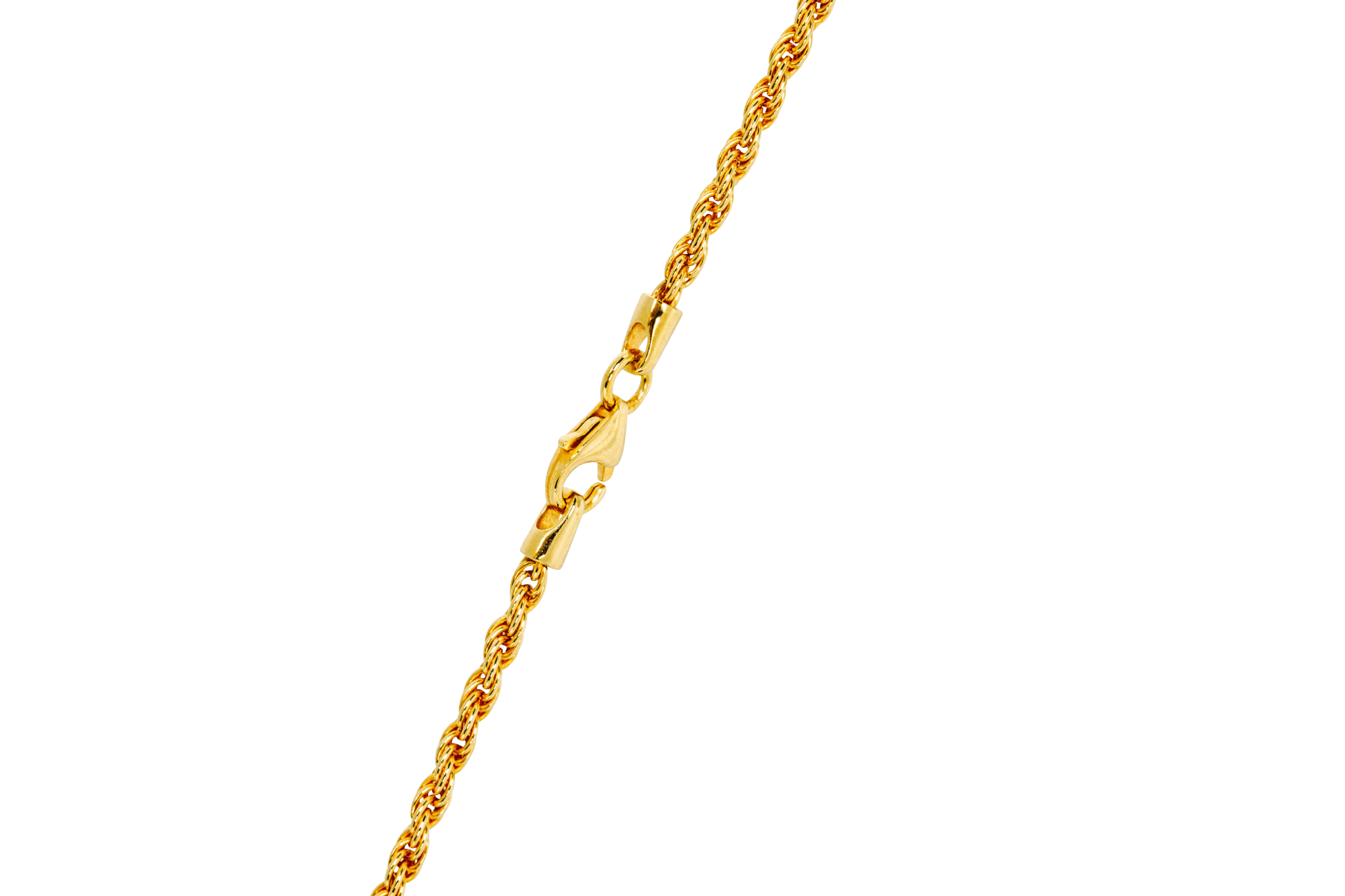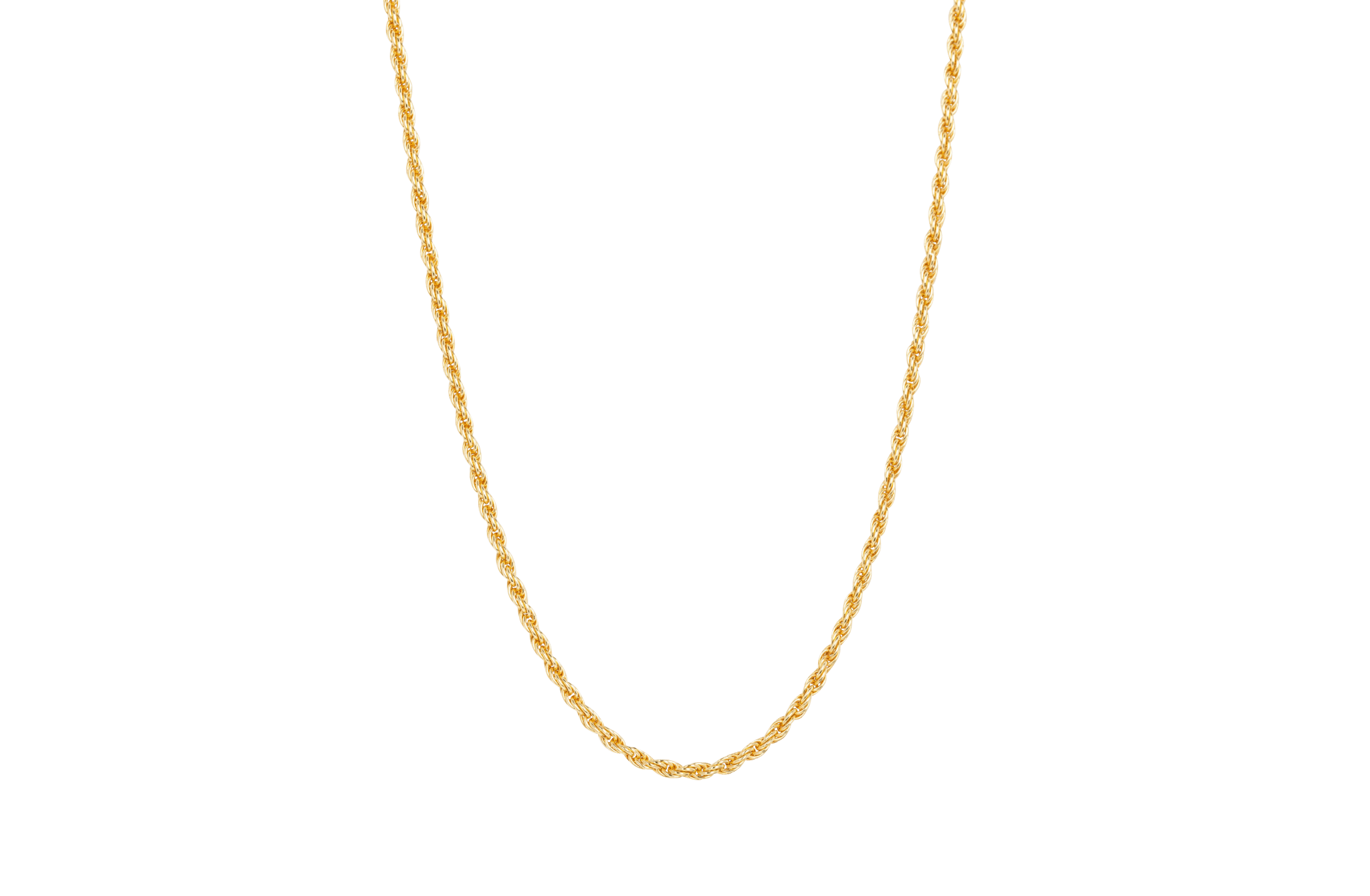 Den här kedjan kan vara både den perfekta vardagskedjan eller kedjan du bär för den perfekta utekvällen. Kedjan föreställer rep som vackert slingrar sig runt varandra. Du kan med fördel varva den med våra övriga kedjor eller göra den personlig med en av våra IX Letter-charms. • Smycket är tillverkat av 100 % återvunnet 22-karats guldpläterat 925-sterlingsilver. • Alla våra smycken är stämplade med 925 IX på insidan – det är vår professionella namnstämpel, registrerad av den danska ädelmetallkontrollen.Mannen bär halsbandet i 50 cm.Damen bär halsbandet i 50 cm.