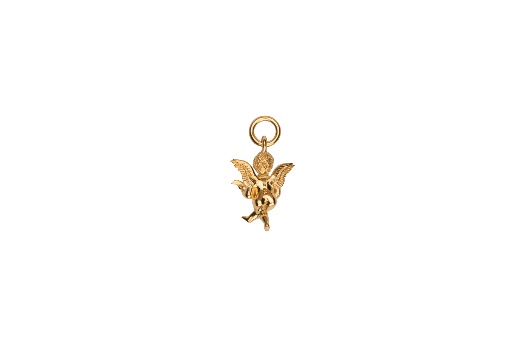 Detailed unisex pendant. The Angel charm can be worn in a necklace, bracelet or earring.• This piece is made from 100% recycled 22 karat gold-plated 925 sterling silver. • The IX Angel Charm measures 12 x 10 mm.• All our jewellery is stamped with 925 IX on the inside, which is our professional hallmark registered with the Danish Assay Office.The woman is wearing the chain in a 45 cm.