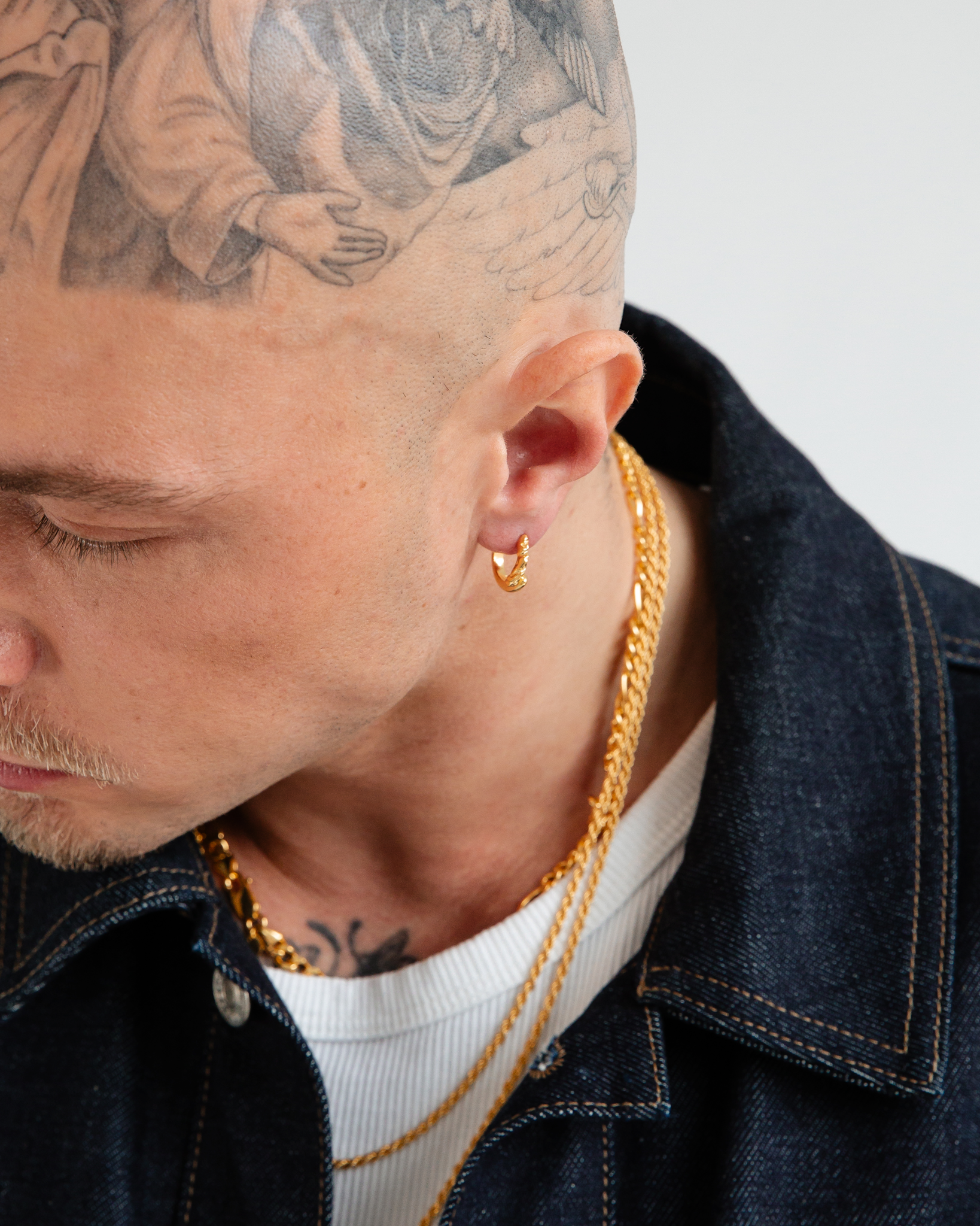 Rustic-örhängena är unisex, designade för att passa både män och kvinnor, och finns i både guldpläterad och silver.