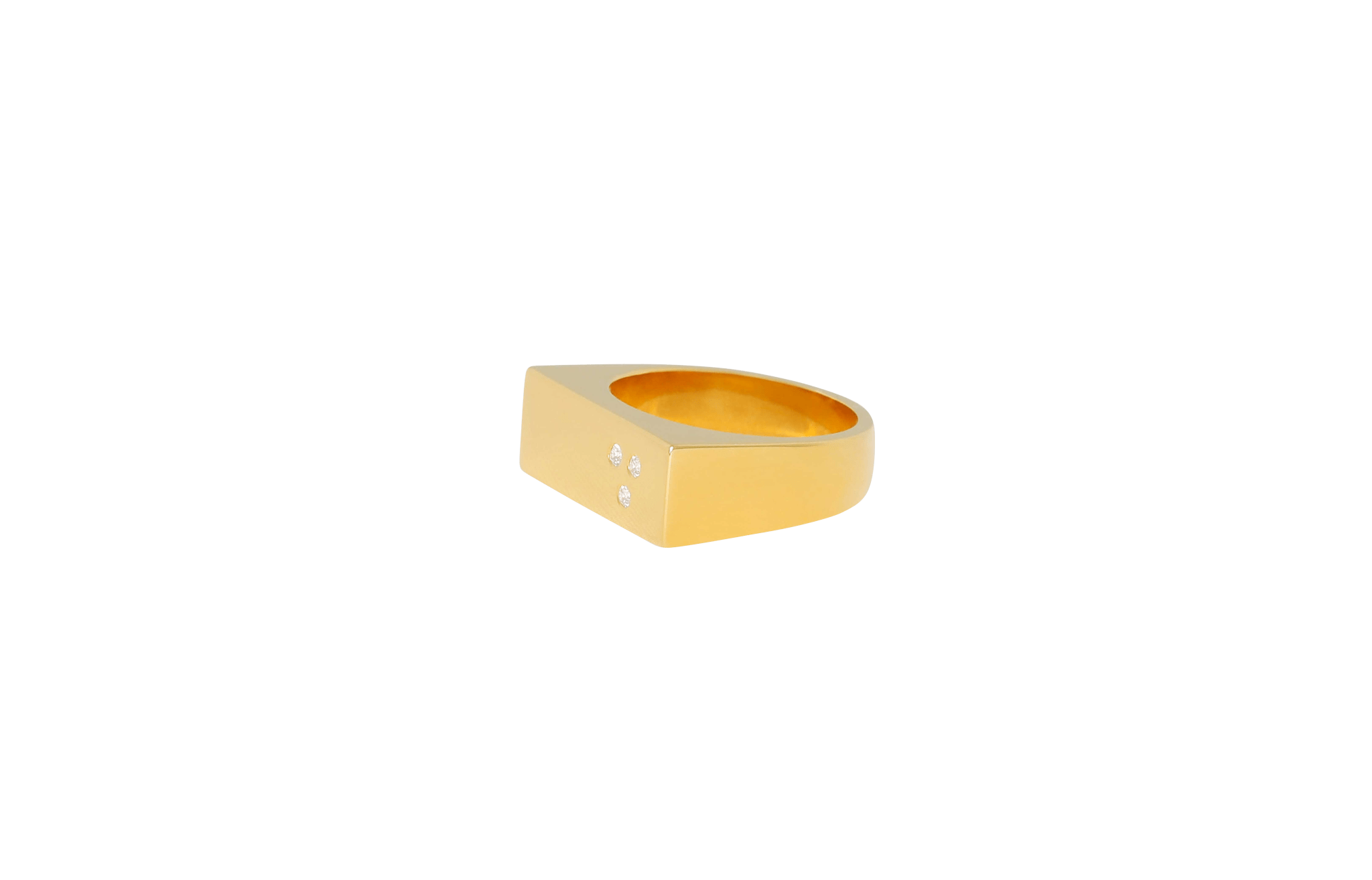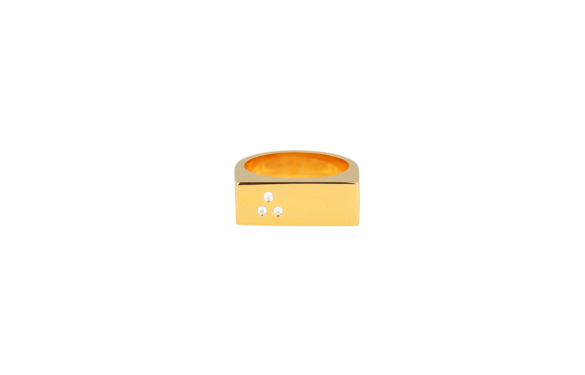 En klassisk och tidlös design som med sin nya form anpassar sig till fingret oavsett ringstorleken. De tre små stenarna utgör tillsammans den vackra stjärnhimlen.• Smycket är tillverkat av 100% återvunnet 22 karats guldpläterat 925 sterling silver.  • Alla våra smycken är stämplade med 925 IX inuti – vår professionella namnstämpel, registrerad av den danska ädelmetallkontrollen.