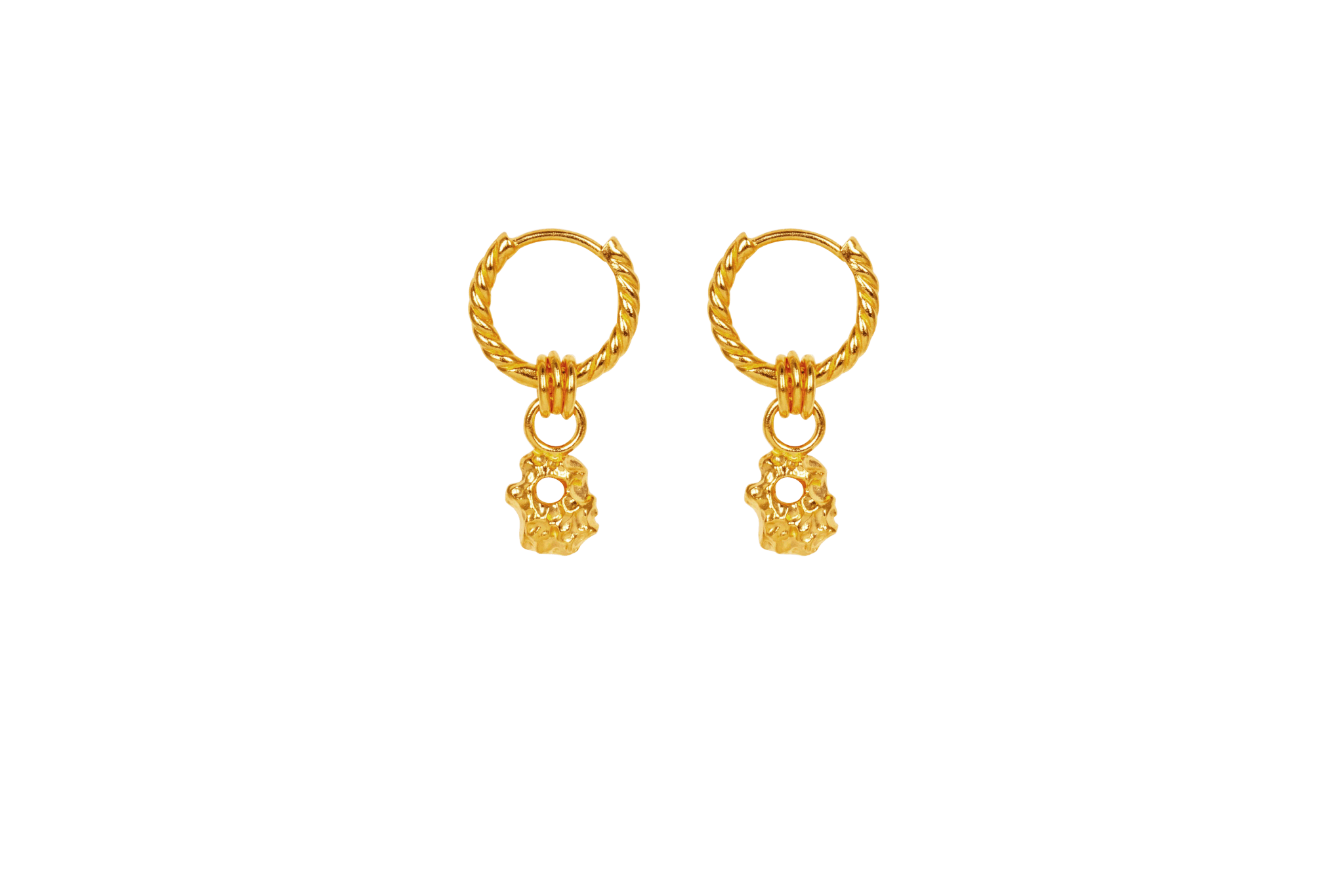 Vackra och råa örhängen med organisk form inspirerade av ihåliga stenar.• Smycket är 2,5 cm långt.• Smycket är tillverkat av 100% återvunnet 22 karats guldpläterat 925 sterlingsilver. • Alla våra smycken är stämplade med 925 IX inuti, vår professionella namnstämpel, registrerad av den danska ädelmetallkontrollen.