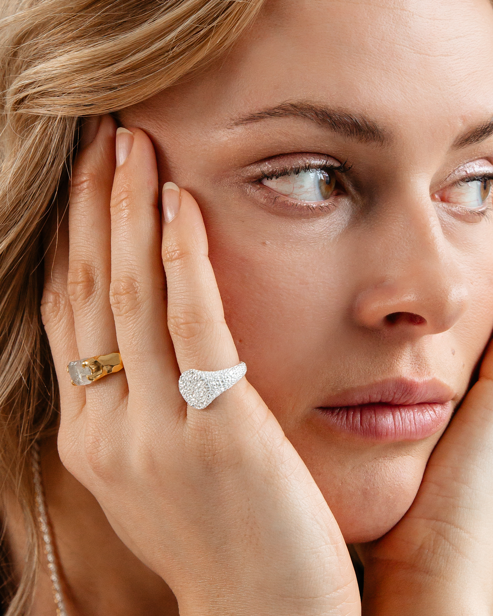 Den tidlösa Mini Oval Signet-ringen har en unik crunchy yta som ger en modern touch. Denna statement-ring tillför edge till din stil och kan bäras ensam eller kombineras med andra ringar.