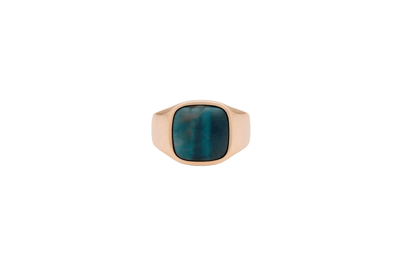 IX Cushion Signet Ring Hawks Eye Gold 14K